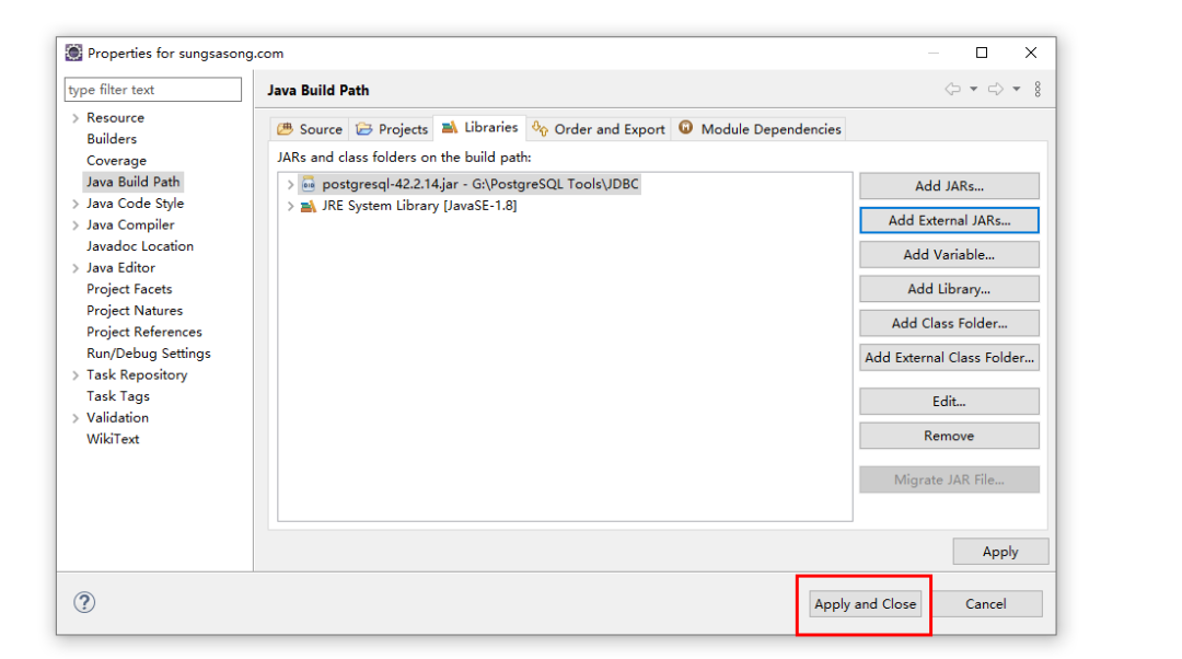 2.1 在 Eclipse 中配置 JDBC Driver for PostgreSQL