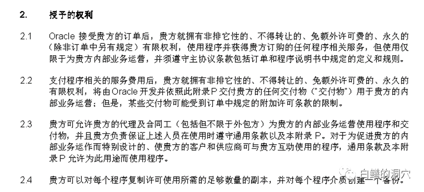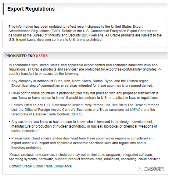 随着美国频频动用类似EAR这样的进出口管制措施对中国施压,甚至采用长臂管辖的方式,以超越正常EAR的手段对中国进行限制。似乎20年前解散的巴统又回来了。最近美国商务部一直在扩大黑名单,只要上了黑名单的企业,随时就可能遭受EAR最严格条款的限制,被强制断供。因此这两年也经常有企业在分析EAR可能对数据库应用产生什么样的影响,甚至有些企业产生了杯弓蛇影,认为所有的开源数据库产品也是不安全的,随时可能被老美断供。2020年的时候,就有一个企业的IT部门领导问我,如果我们企业上了美国商务部的黑名单,那么我们已经购买的Oracle数据库许可证会受到影响吗?实际上很多朋友对此都有一些疑问,今天我就写一篇文章来聊聊各种商用与开源许可证是否会受到EAR的影响。首先我们以Oracle的许可协议来看看美国商用数据库的许可协议。Oracle数据库的许可协议分为OTN许可协议、OMA许可协议、OLSA许可协议等多种。不同协议的适用范围都做了严格的限定,超出限定范围的适用被视为盗版。其中OTN协议适用于研究与科研环境,我们略过不谈。重点来看看ORACLE 主协议OMA和软件服务协议OLSA。Oracle主协议定义了Oracle公司与客户之间关于使用Oracle产品的一系列通用性协议,适用于所有的Oracle产品类型。Oracle主协议并不涉及特别具体的协议款项,但是是所有使用Oracle产品所必须遵循的双方约定,定义了用户与Oracle公司的责权利。Oracle软件的许可包含在附录-P中。其中规定的权利:主协议中规定采购者对该产品拥有永久性的有限权利,但是不得转让。这个条款排除了从第三方转让购买许可证的可能性,不过也排除了Oracle公司因为美国EAR管制而剥夺你已经购买的Oracle许可证,这个条款否定了Oracle有权利随时停止你已购买的Oracle许可证的使用权的网络传闻。另外Oracle主协议也明确了Oracle产品适用于美国出口法律和法规,也就是Oracle产品出口必须遵循EAR。在主协议中,还有一个检查条款,对一些涉及敏感信息的单位,存在一定的安全风险:Oracle OLSA协议是Oracle的许可与服务协议专注于Oracle软件程序与服务。Oracle OLSA完全遵循Oracle Global Trade Compliance(Orale全球贸易合规性要求),其文本如下:Oracle Global Trade Compliance (GTC) is responsible for import and export oversight, guidance, and enforcement to enable worldwide trade compliant business processes across Oracle, in order to uphold and protect Oracle's global trade privileges and ensure the success of Oracle's business. GTC manages Oracle's global trade compliance portfolio, and is responsible for global trade regulatory interpretation and coordination of policy advocacy. Further, GTC reviews and resolves global trade compliance matters; serves as the clearinghouse for all global trade compliance information, including product classification, and is empowered to take actions necessary to ensure Oracle remains compliant with U.S. and applicable local import and export laws, regulations, and statutes.从上述文字可以看出,Oracle GTC要求Oracle许可证必须遵循United States Export Administration Regulations (EAR)的要求。Oracle对EAR的遵循如官网所示:从OLSA协议上看,不采购Oracle服务,仅仅限制了用户享用Oracle服务的资格,并不对所采购的Oracle数据库的终生拥有权产生影响。但是关于软件更新的条款从另外一个方面对使用Oracle数据库给出了限定:Oracle只对购买了服务的客户提供补丁更新服务,客户可以自行下载和安装补丁,Oracle不收取额外的费用,但是对于没有购买服务的用户,是不能下载并安装补丁的。由于数据库产品遇到BUG的可能性极高,只安装数据库软件,不打补丁,在关键业务系统中是很难做到的。所以,不继续购买Oracle服务而正常使用Oracle数据库存在较大的难度。虽然说目前大多数企业并没有购买Oracle的标准服务,通过借用MOS账号下载补丁,也没觉得什么不方便。不过从严格遵守知识产权相关法规来说,还是存在风险的。接下来我们来看看开源数据库,借用一张网上的图来说明目前最常见的开源许可协议的特点: 从对数据库使用的主要开源协议上分析看,这些开源协议都没有遵守美国政府进出口管控政策的条款,不会受到美国政府进出口管控政策的影响。不过大多数开源数据库的支撑企业都注册在美国,可能会受到美国政府政策的影响,采取一些不利于开源政策的改变。以应用最为广泛的GPL开源协议为例,GPL开源许可协议确保使用者可以完全自由的使用该软件而没有版权限制,但是如果你需要修改开源代码,或者利用开源代码开发自己的产品,则你开发的的代码也必须开源,否则就违反了GPL的版权限制。从GPL协议的约束上可以看出,你可以利用GPL开源协议的开源产品发布收费的商用版本,但是前提是你对开源代码的任何修改,必须继续开源。在许可协议中没有受到美国法律约束的条款。因此采用GPL授权的软件,在软件许可上不会受到美国政府政策改变的影响。目前几乎我国的所有国产操作系统,包括华为的手机操作系统鸿蒙,都是来源于LINUX开源项目或者基于LINUX开源项目。因此Linux开源项目的安全性对于我国的自主操作系统关系重大。从GPL开源协议上看,目前还是没有太大风险的。另外一个十分重要的使用GPL开源协议的软件是MySQL数据库。目前的国产数据库大部分基于MySQL和Postgresql两种开源数据库,而Postgresql数据库的许可协议是BSD开源协议。BSD开源协议(original BSD license、FreeBSD license、Original BSD license)是一个
