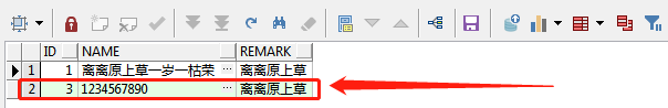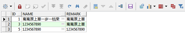 第三句:insert into test_01(id,name,remark) values(3,'1234567890','离离原上草');