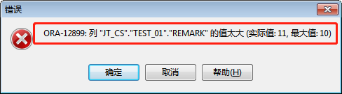 这一句name不超,但remark里塞'12345678901',这是十一个英数字,已经超过,故插入失败。