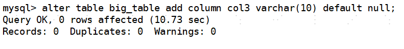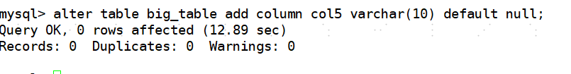 alter直接添加字段,时间12.89s,时间跟无读写的时间差不多。