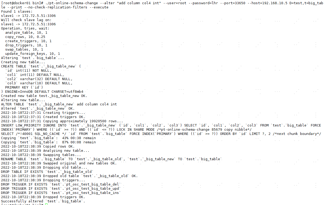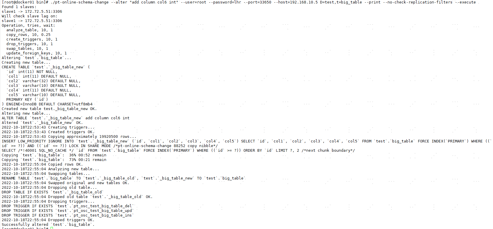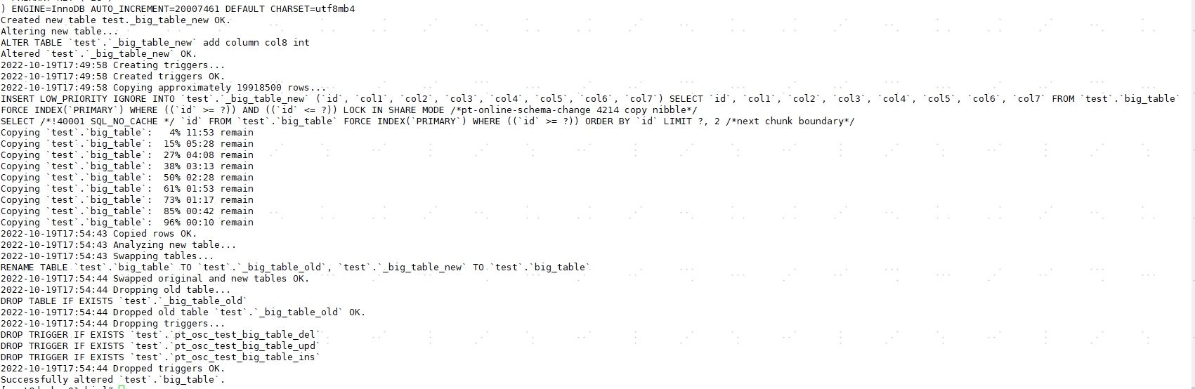 综上,在mysql5.7已经实现了online ddl的情况下,使用pt工具在线添加字段性能远远不如mysql自己的实现方式。
