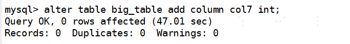 利用pt工具添加字段,时间在70s左右,相比于alter直接添加没有任何优势。