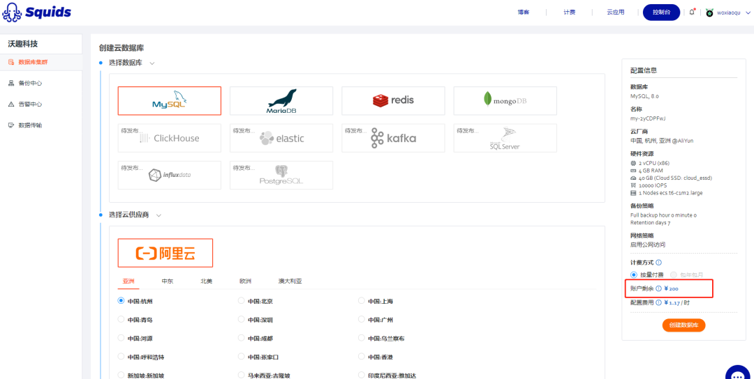 把大象放进冰箱很简单:开门,把大象放进去,关门。获得一个免费的RDS数据库也很简单:注册登录Squids官网,创建数据库。