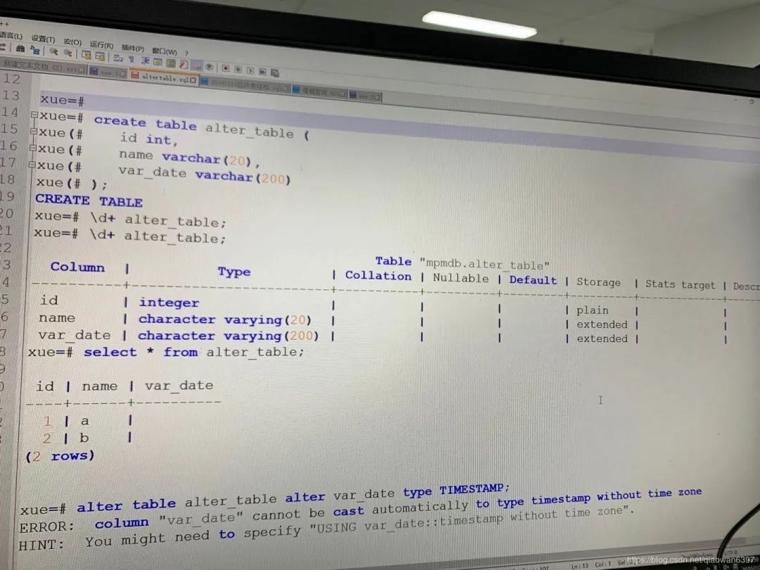 出现错误:error:cloumn “var_date” cannot be autmatically to type timestamp without time zone Hint:You might need to specify "using var_date::timestamp without time zone"