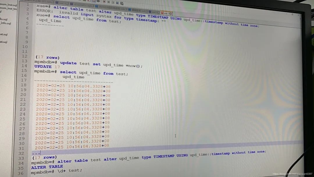 3)显式修改表中该字段类型为”timestamp“类型