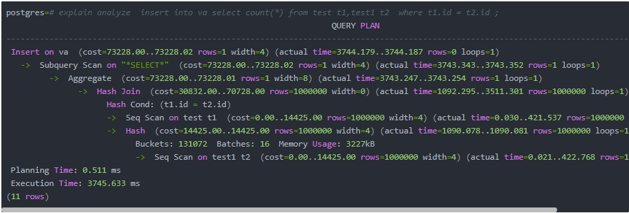 select count(*) from test t1,test1 t2 where t1.id = t2.id ;
