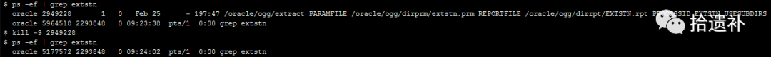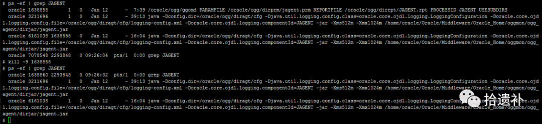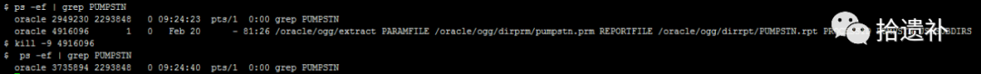 1. 按照指导,首先要把OGG有关进程全部停掉。由于MGR进程已经停摆,这里需要使用文件系统Kill -9的方法,灭口所有活着的进程们。