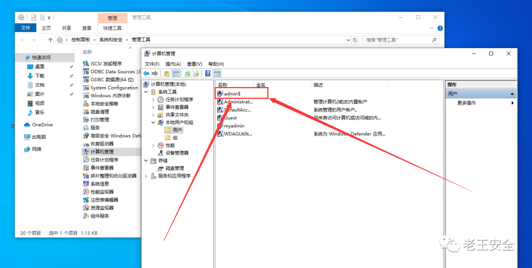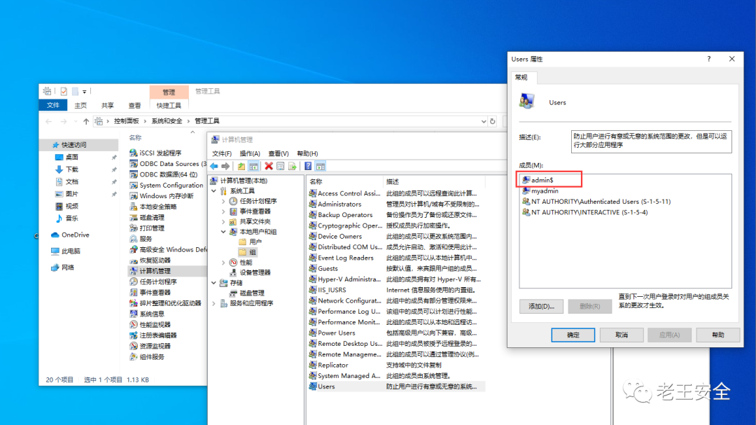 此时可以直接登录3389进行操作,但隐蔽性仍不足,可以在控制面板的管理工具中用户与用户组查看到该用户的存在,还需要进一步操作。