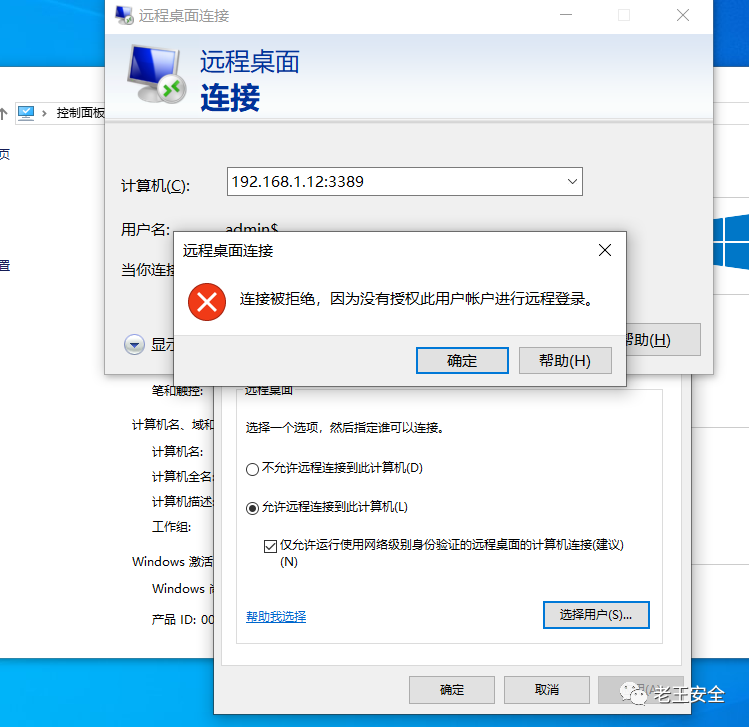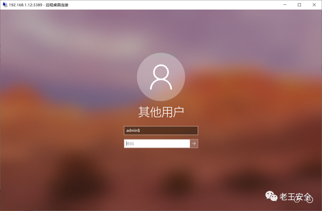 发现用户未授权,这时候又多了一个利用条件,要在右下的选择用户下,添加admin$用户的用户名,才能正常登录3389。
