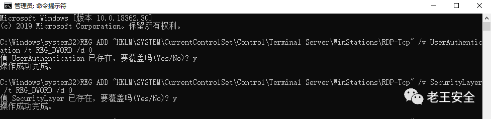 REG ADD "HKLM\SYSTEM\CurrentControlSet\Control\Terminal Server\WinStations\RDP-Tcp" /v SecurityLayer /t REG_DWORD /d 0