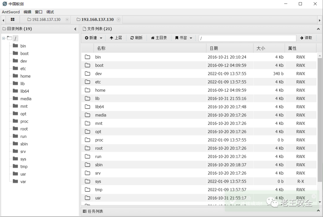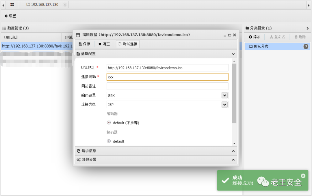 有多种类型的Java内存马,至于每一种类型的马是不同的实现方式,可以自行去了解。这里笔者采用的是Filter蚁剑的马子,复制内存马PUT好的链接并配置好蚁剑,成功连接上。