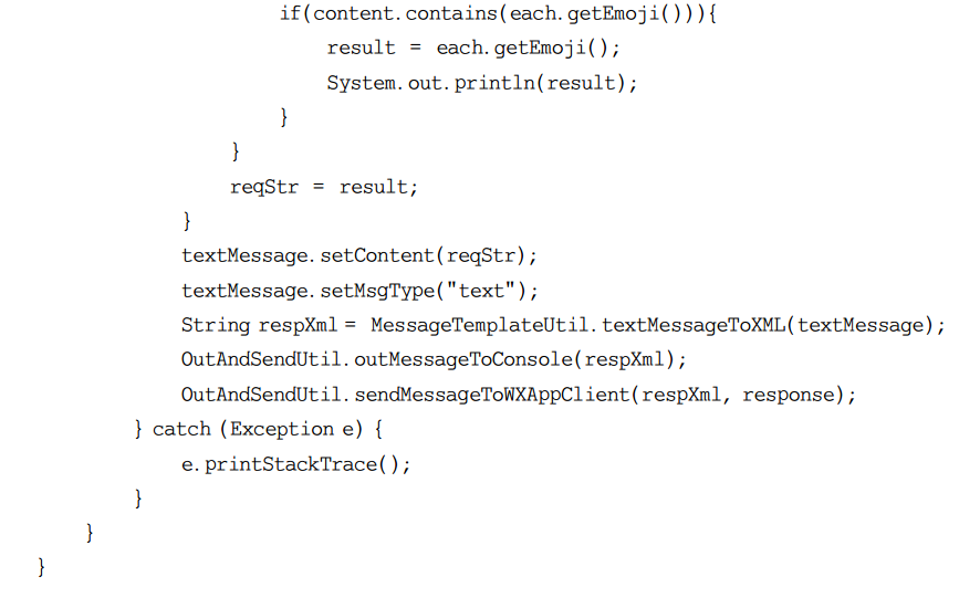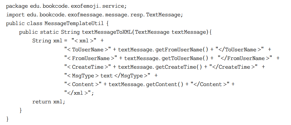 在包edu.bookcode.exofemoji.service中创建类MessageTemplateUtil,代码如例5所示。