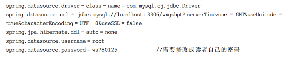 修改项目src\main\resources目录下的文件application.properties,向该文件中增加对MySQL数据库的配置信息,代码如例6-10所示。注意,不同版本MySQL的配置信息可能有差异,例如5.x版和8.x版的配置信息不同。