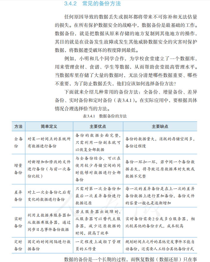 我看了下“数据管理与分析”这本书,让我太意外了,里面包括数据库基础原理,数据库操作,还有备份恢复。