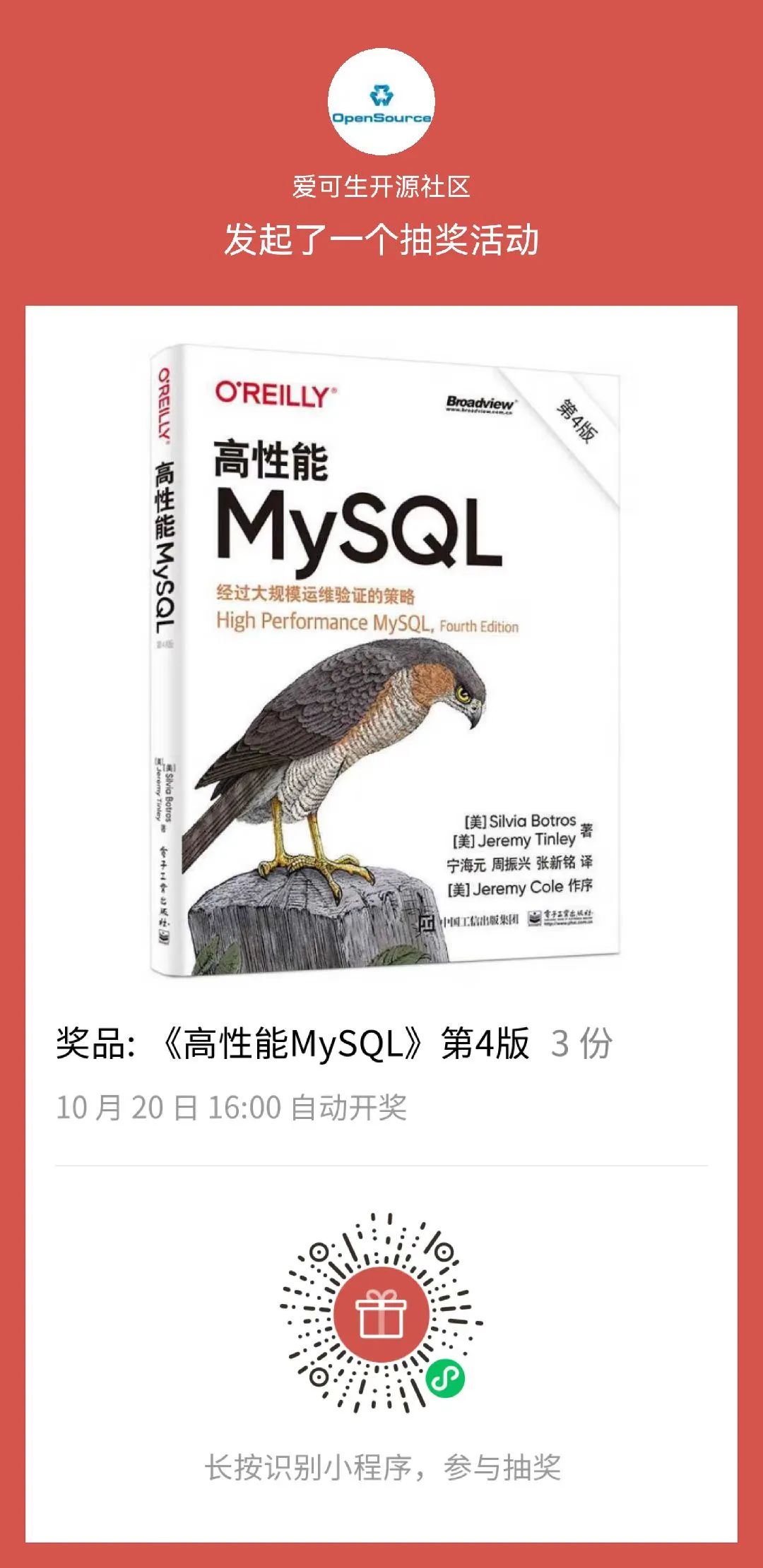 雍正大人下旨:爱可生开源社区定期以抽奖或者其他活动方式送出精心挑选的图书,以此来回馈一直支持我们的小伙伴们;