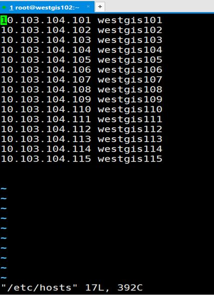 主节点到所有从节点,即westgis101到westgis102~westgis115,此处westgis101为NameNode,其它节点为DataNode。以westgis102为例,配置可以分为三小步,分别是:
