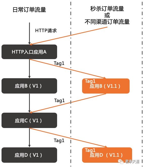 标签路由通过标签将一个或多个服务的提供者划分到同一个分组,从而约束流量只在指定分组中流转,实现流量隔离的目的。标签路由可以作为多版本开发测试、同应用的多版本流量隔离以及A/B Testing等场景的能力基础。标签路由目前仅支持ECS集群中的应用。类似于我们的泳道