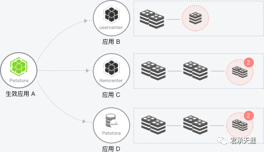 当应用B、C或D的某个实例异常时,系统能够检测到,并根据配置的摘除实例比例上限判断是否将对应的实例从应用中摘除。