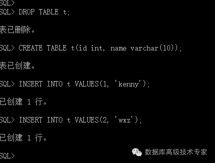 了解了ROWID结构,我们就可以自己建表,并根据ROWID来定位我们的数据在磁盘上的位置,进而分析数据中保持的内容。下面先建一张表,并插入两条记录: