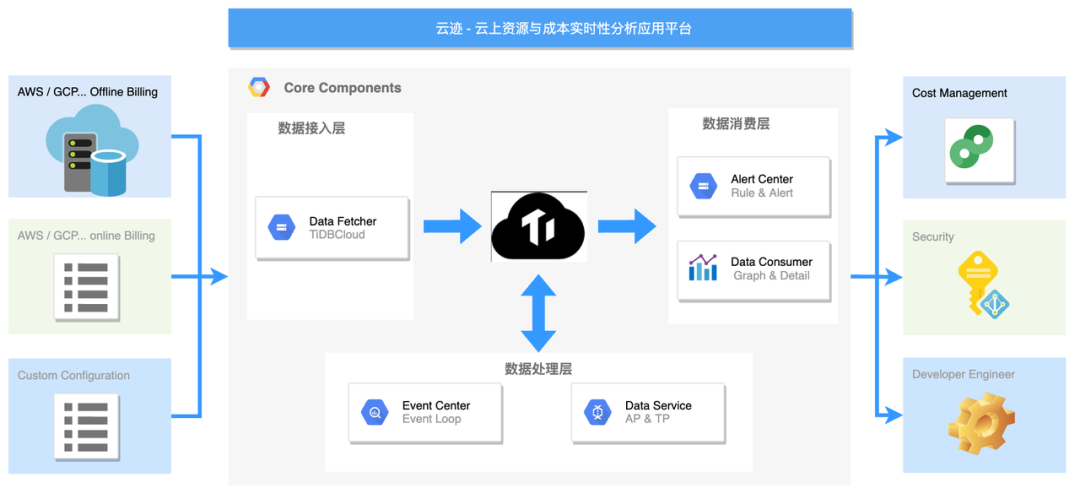 项目介绍:成本优化不仅对于公司有着重要意义,也是每个云上开发人员都需要具备的 sense。本项目终极目的是解决企业在云上部署架构下统一成本分析、关键指标监控告警的问题。因考虑到数据量巨大,统计分析实时查询、告警要求多,我们采用 HTAP 数据库的 TiDB 作为存储和计算引擎,发挥 TiDB 在应用场景下的价值。期待可以通过云迹,节约你的金钱亿点点!