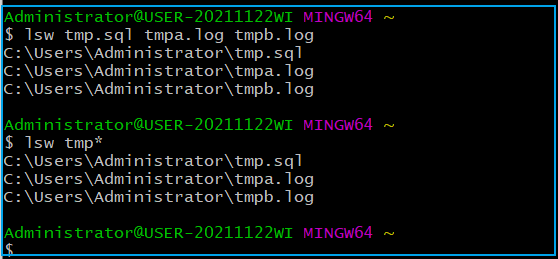 function sedw(){sed -e 's#^.##' \-e 's#^.#\U&:#' \-e 's#/#\\#g' $*}function lsw(){ls `pwd`/$1 | sedw}