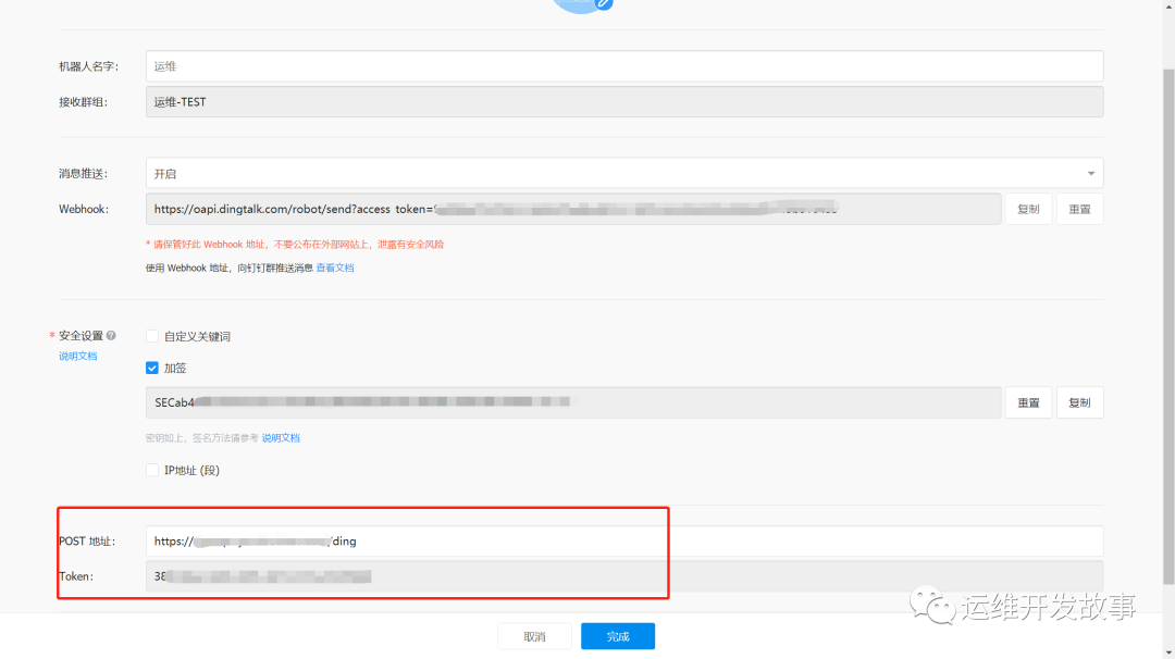 !! PS:token、url 这些配置其实是可以放到配置文件中,这里为了便于演示,就放在代码文件中了。