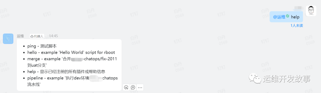 技术人员在聊天群里@机器人,发送需要执行的指令 机器人接收到指令,对指令进行判断 根据指令执行相关操作,并将结果反馈到聊天群