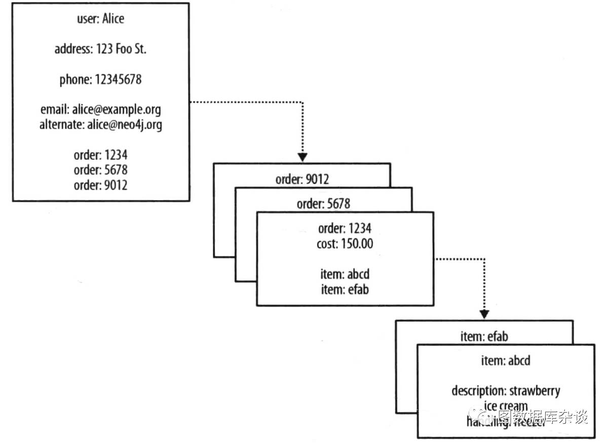 下图是一个电商系统中的聚合存储模型,通过k-v表示数据之间的联系。