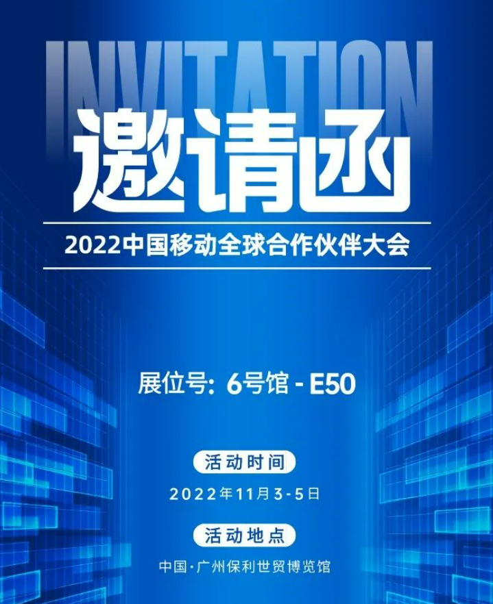 十年同行,十年跨越,继成功举办9届全球合作伙伴大会之后,中国移动将携手数百家国内外合作伙伴,以“聚力融合创新 共谱数智华章“为主题,于2022年11月3-5日在中国广州保利世贸博览馆召开第十届中国移动全球合作伙伴大会。