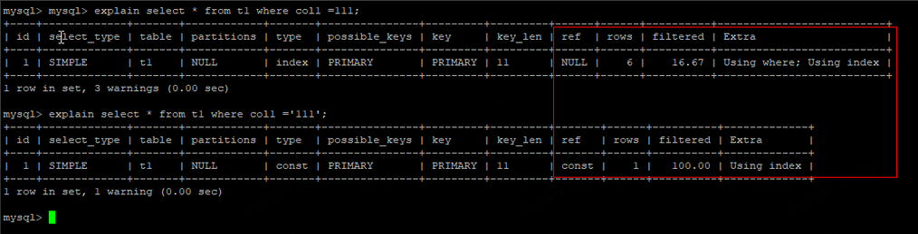 t1表的col1为varchar类型,但是参数传入的是数值类型,结果产生了隐形转换,索引失效导致type=index的全表扫描。