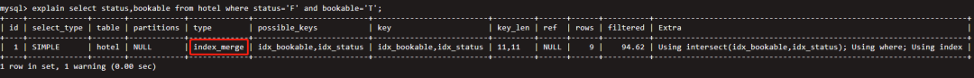 但是,当遇到如图2个索引字段分布都很差的情况时(status与bookable的区分度都很低),2个索引的结果集存在大量数据需要merge,性能就会变得很糟糕。