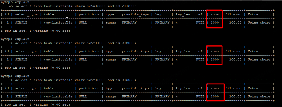 扫描数很少,虽然是type=index的索引扫描,但是由于MYSQL对limit的优化,实际上并不会全表扫描。