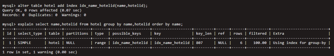 alter table hotel add index idx_name_hotelid(name,hotelid);