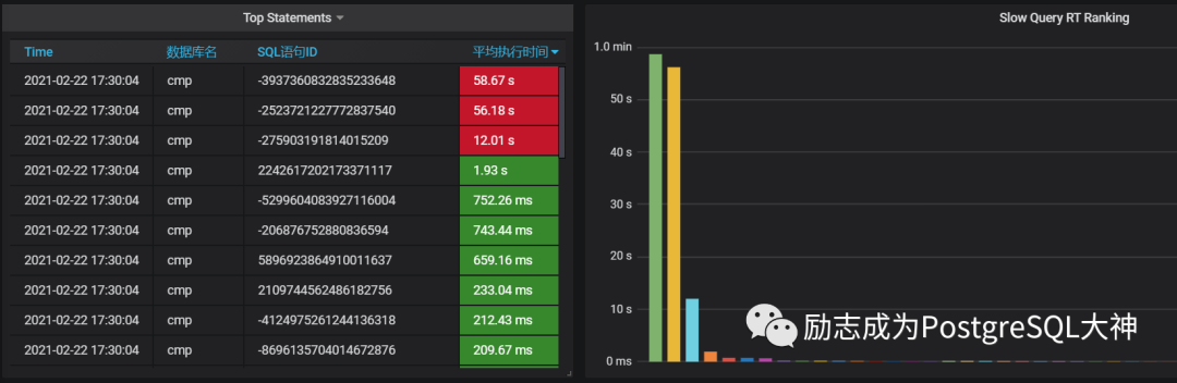 登陆系统查看pg_stat_statements并根据qerryid立即找到了query文本,但因为使用的是绑定变量1,2。因此,我们还需要根据文本到 log中查找SQL详细的SQL。最终发现的 SQL如下: