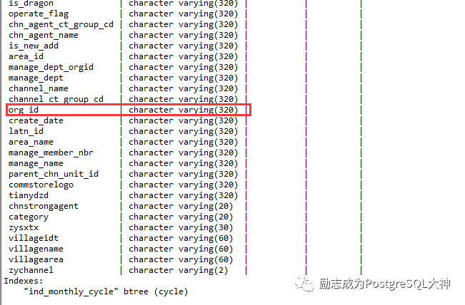 该位置的过滤条件为t.org_ id::text= a.dim5_id::text,我们看一下表,表由左向右连接,这里被连接的表还是cmp.tb_jingfen_monthly。而字段dim5_id是 character varying类型。