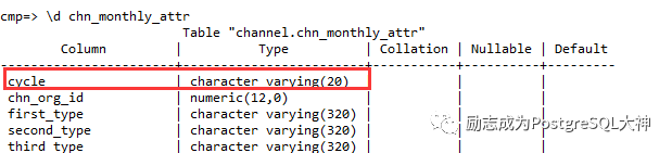 这里看上去,过滤条件也可以。查看chn_monthly_attr表字段cycle的类型。