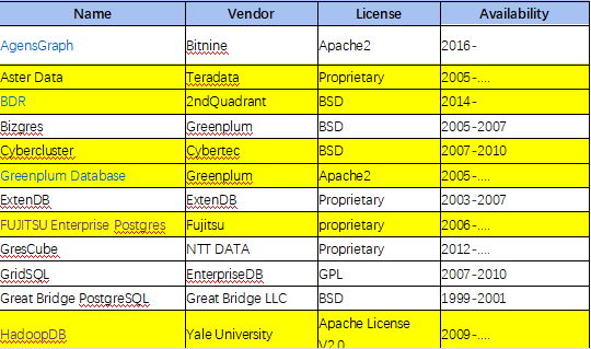 国际:EDB/GreenPlum/Citus/Postgrespro(俄罗斯);微软、亚马逊的RDS云数据库服务。