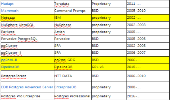 https://wiki.postgresql.org/wiki/PostgreSQL_derived_databases