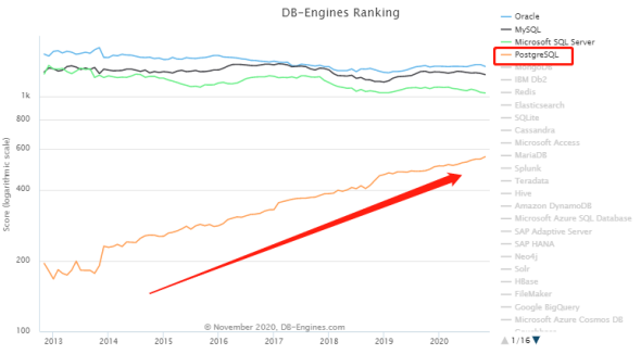 PostgreSQL在DB-Engines的全球数据库排名中位居第四位,随着越来越多的企业、个人用户使用学习,使得它上升趋势越来越强劲,正如股市中的一头牛。