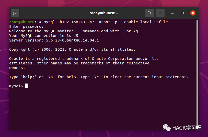 mysql -h192.168.43.247 -uroot -p --enable-local-infile