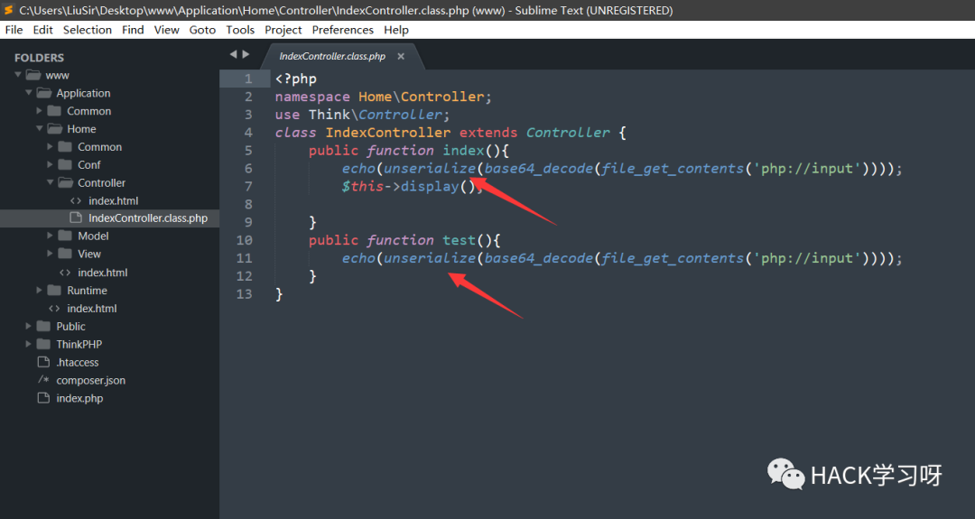 扫描目录发现网站备份文件 www.zip,将源码下载下来查看默认的控制器,发现反序列化点: