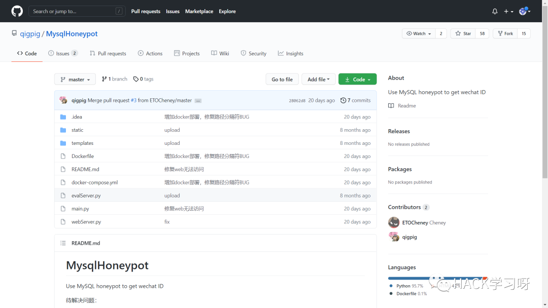 在 Github 上就有一个 MysqlHoneypot,可以利用MySQL蜜罐去读取攻击者的微信ID。