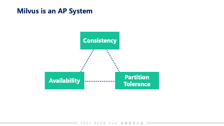 Milvus 与 ElasticSearch 有什么区别?这是我们经常被问到的问题。两者都是面向非结构化数据做分析,ES 这边更多是作用在文本这个点上,也是文本搜索的事实标准;Milvus 则作用在 embedding 这个数据基础上,提供的是一种泛化的搜索能力,并不会像 ES 这样面向一种具体的非结构化数据。整体上来看,其实整个分析和搜索的机制,ES 和 Milvus 还是有很大的相似性的,基本上大家都做同样的一件事情——把非结构化数据映射到一个空间里面,在空间里面做语义的相似度分析。像 ES 文本和查询条件通过 TF-IDF 这样一个统计量去放到子向量空间里面去做分析;Milvus 则是更多是把多样化的非结构化数据去经过一些神经网络作为 Encoder,映射到 embedding 空间里面去做分析。 如何权衡 CAP?
