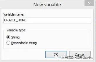 在用户变量窗口中右键选择 Add variable,在弹出窗Variable name中输入变量名(分三次分别添加用户变量名ORACLE_HOME、TNS_ADMIN、NLS_LANG)