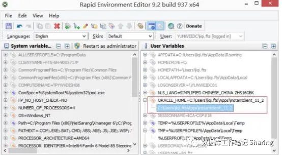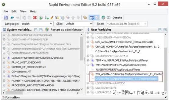 用相同的方法添加TNS_ADMIN用户变量,并指向用户目录instantclient_11_2下的 network\admin 文件夹,完成后点击左上角保存按钮即可。