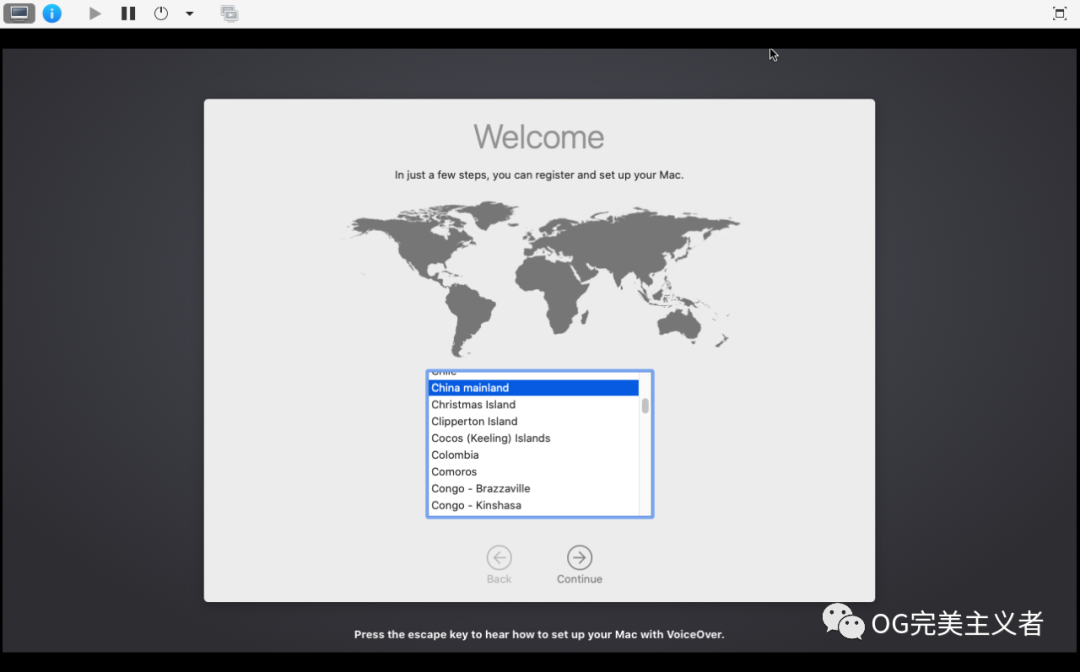 接下来启动虚拟机,进入Macos系统安装过程。首先我们需要格式化一下硬盘,然后按照安装向导完成安装即可。