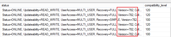 | SQL Server 2014 | 782 | 120 | 120,110,100 |