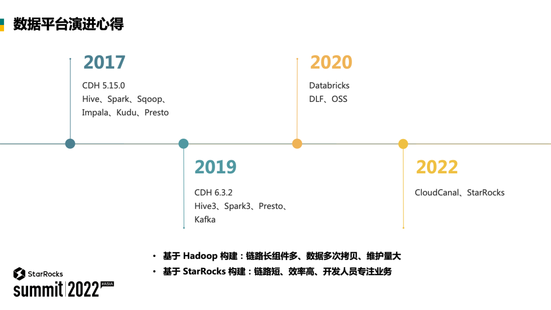 基于 Hadoop 构建:链路长,组件多,数据多次拷贝,维护量大 基于 StarRocks 构建:链路短,效率高,开发人员专注业务