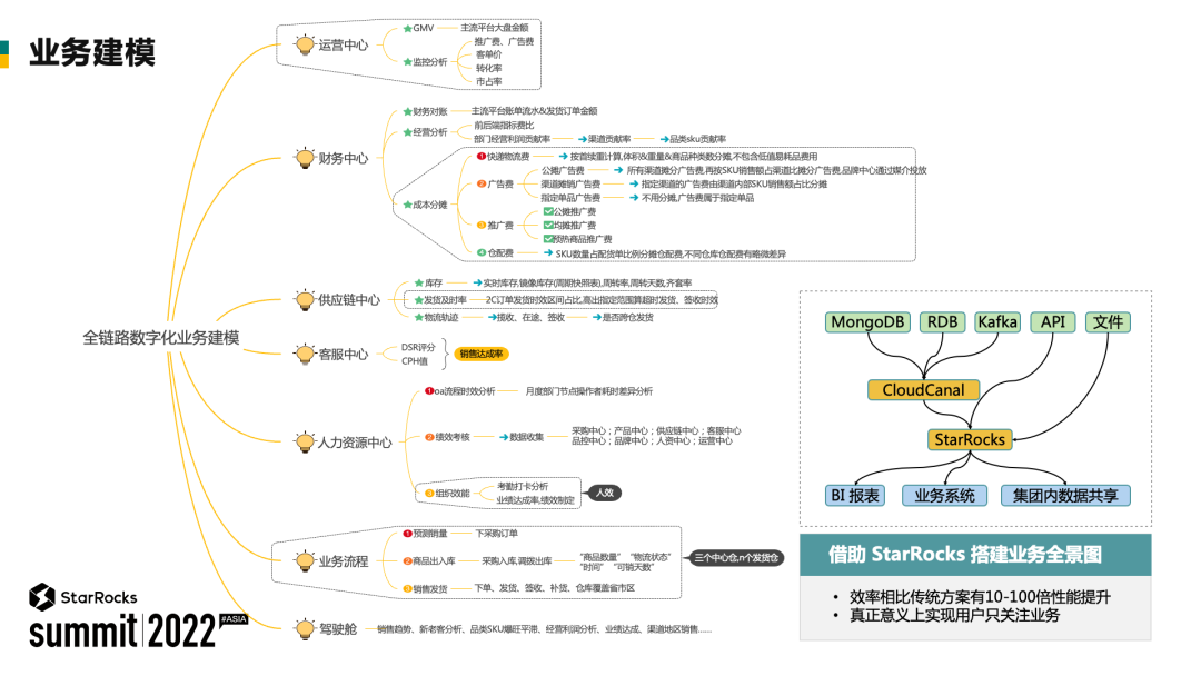 StarRocks 对企业数字化的赋能,主要针对两大块业务:前端控好价格,后端管好库存。实现了以下优势: